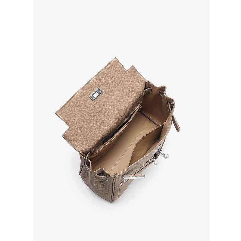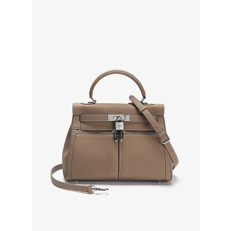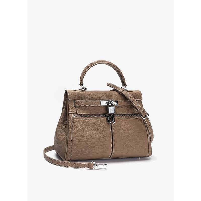 【A096】高見え フラップロック ケリーバッグ エレガントグレー