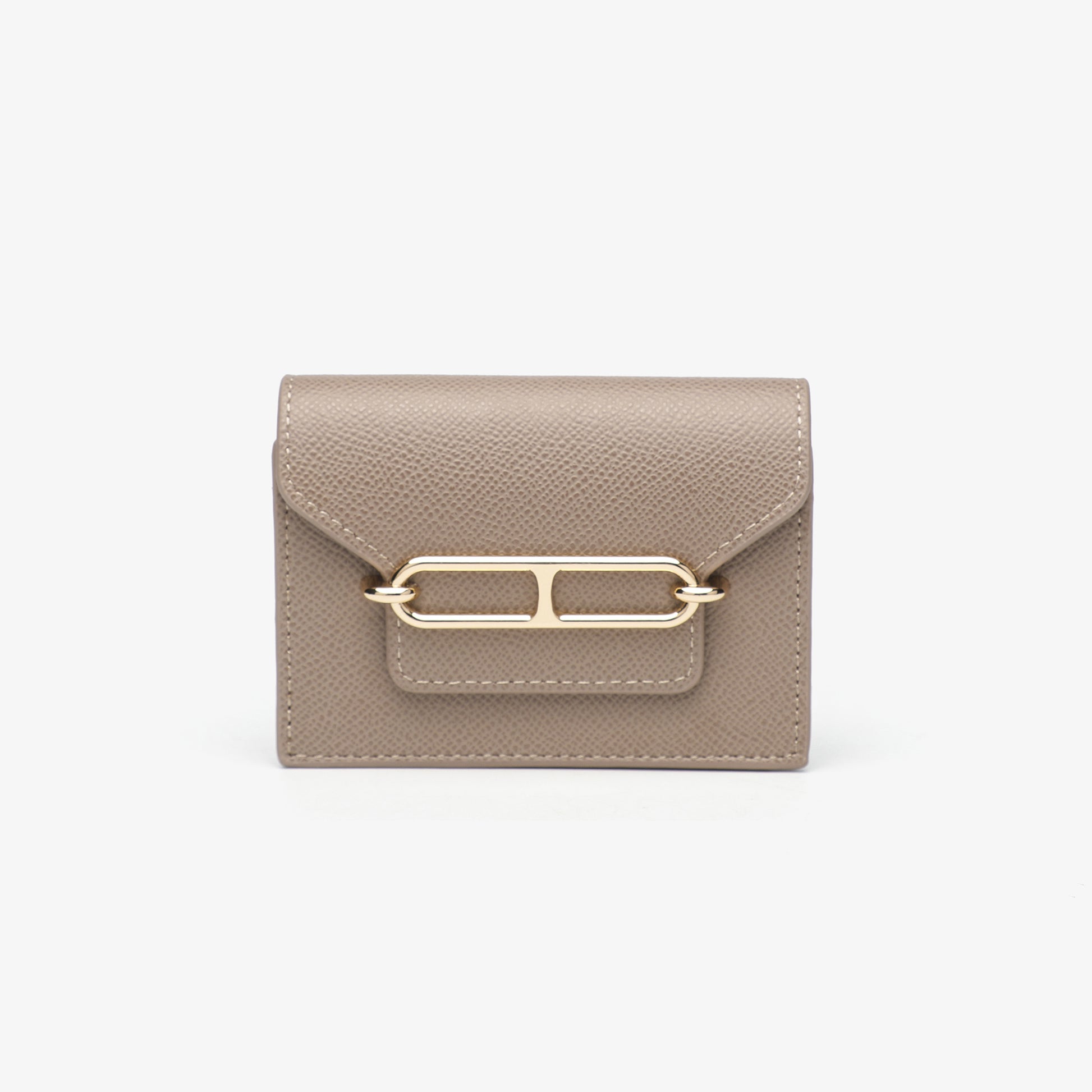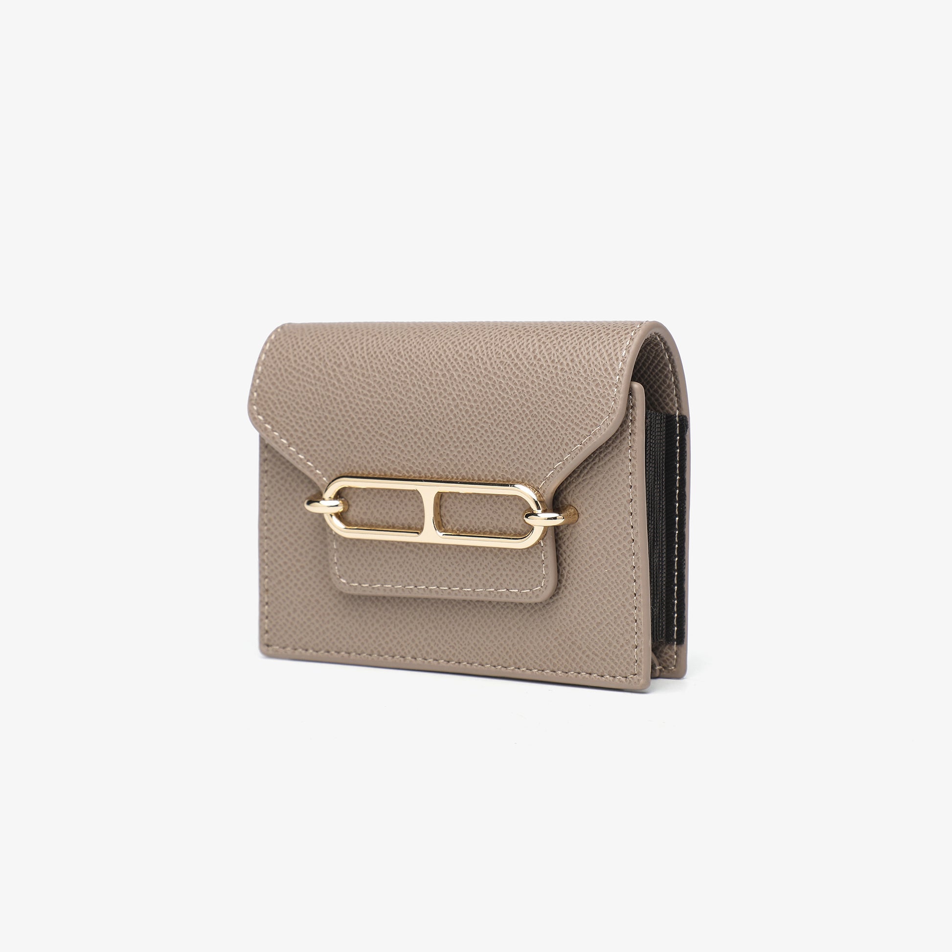 【A070】13枚収納OK!スマートな豚豚鼻型カードケースベージュ