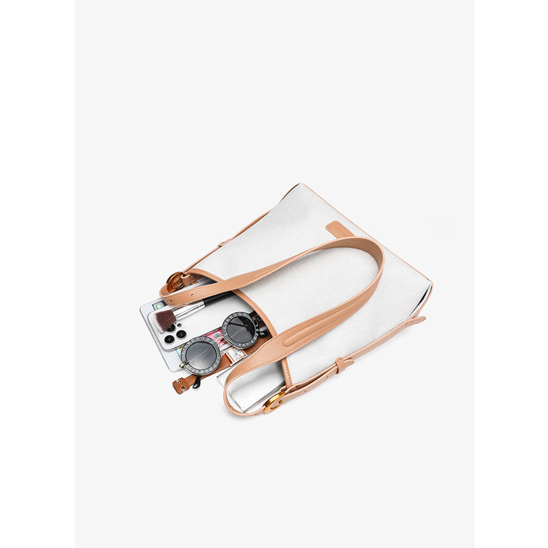 【A062】どんな服にも馴染む♡超軽量トートバッグ 白とキャラメル
