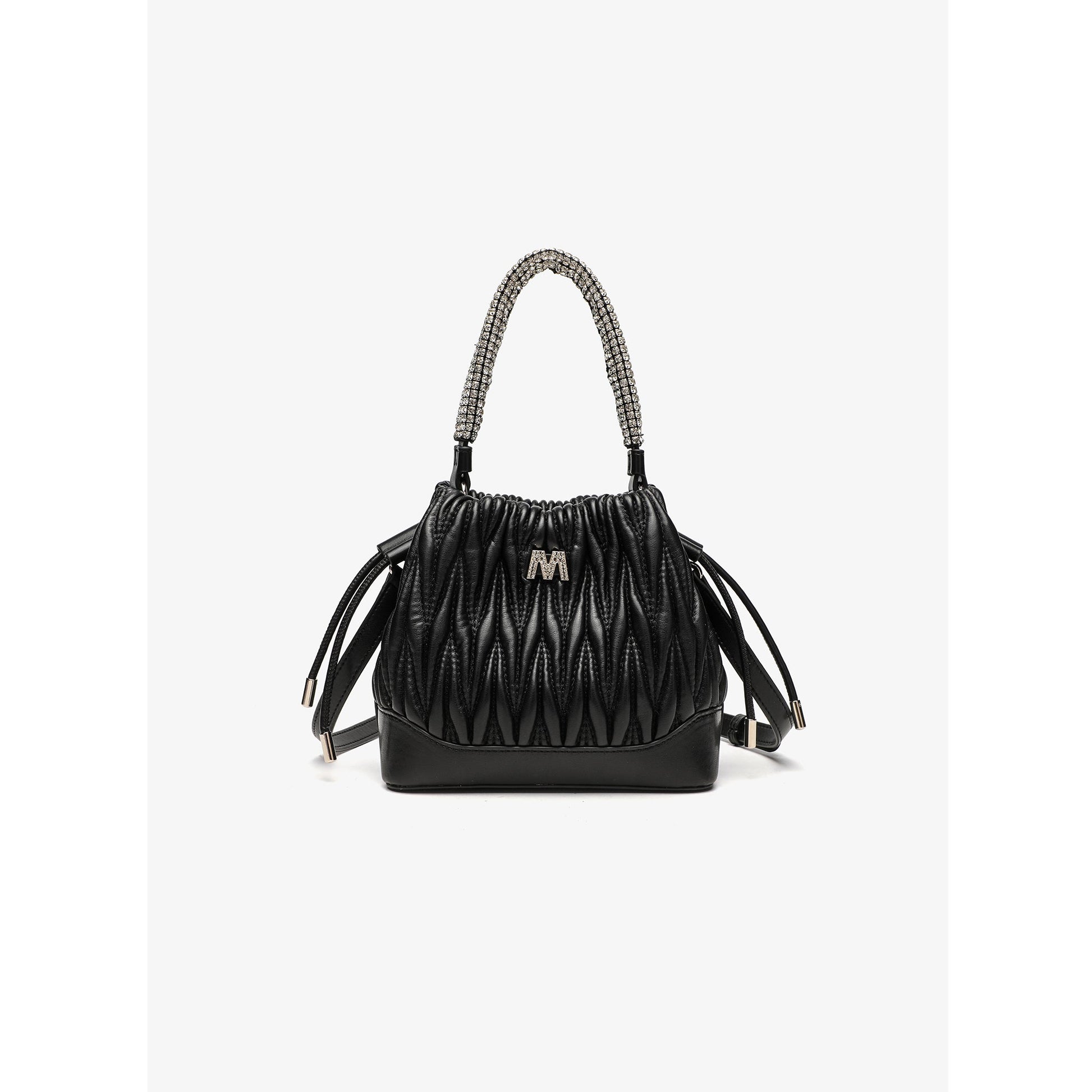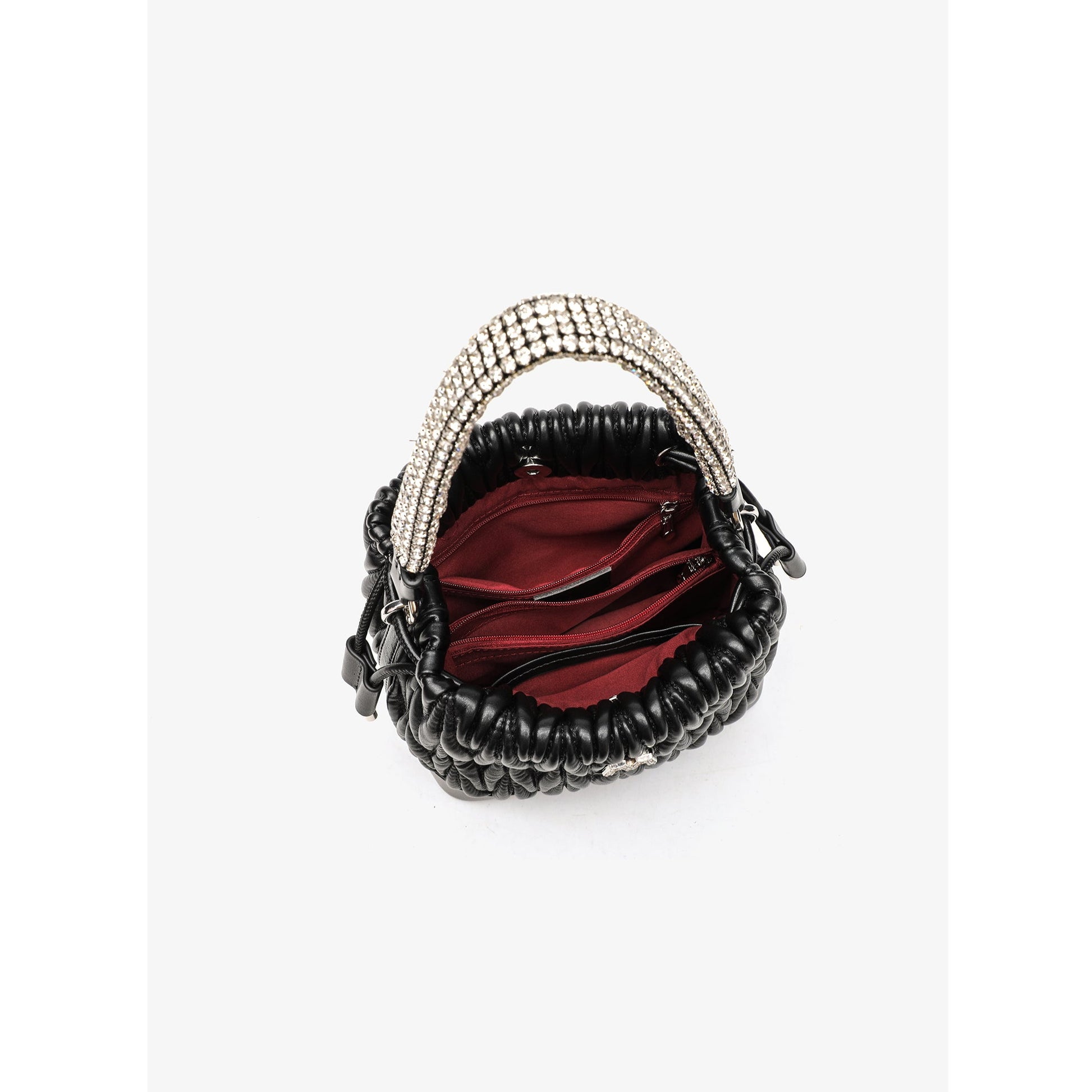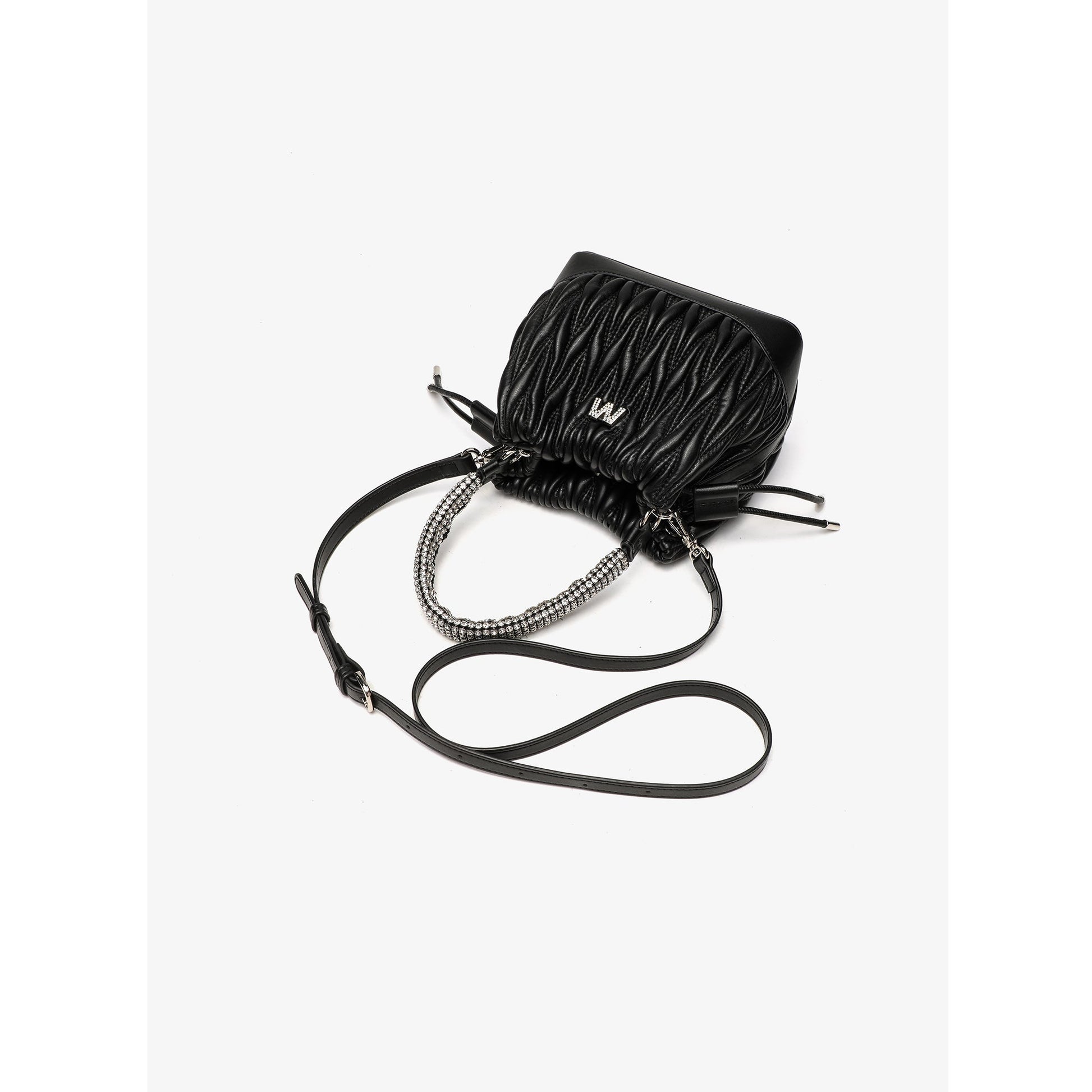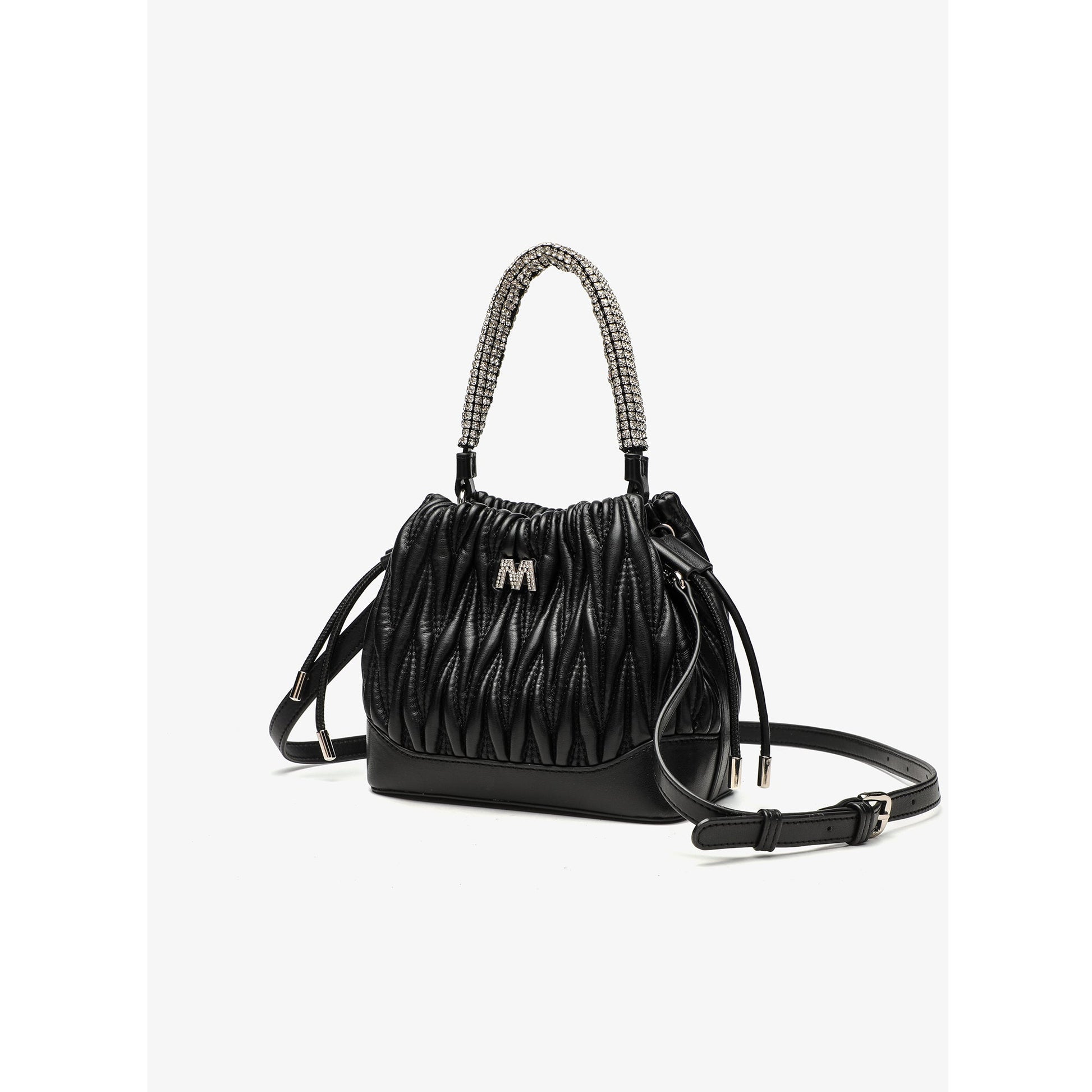 【A059】レトロモダンダイヤモンド付き しわ加工バケットバッグ