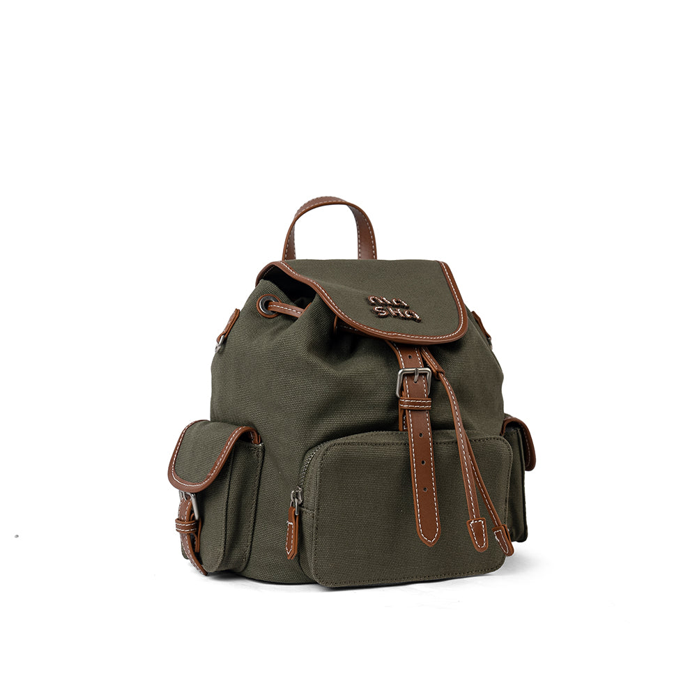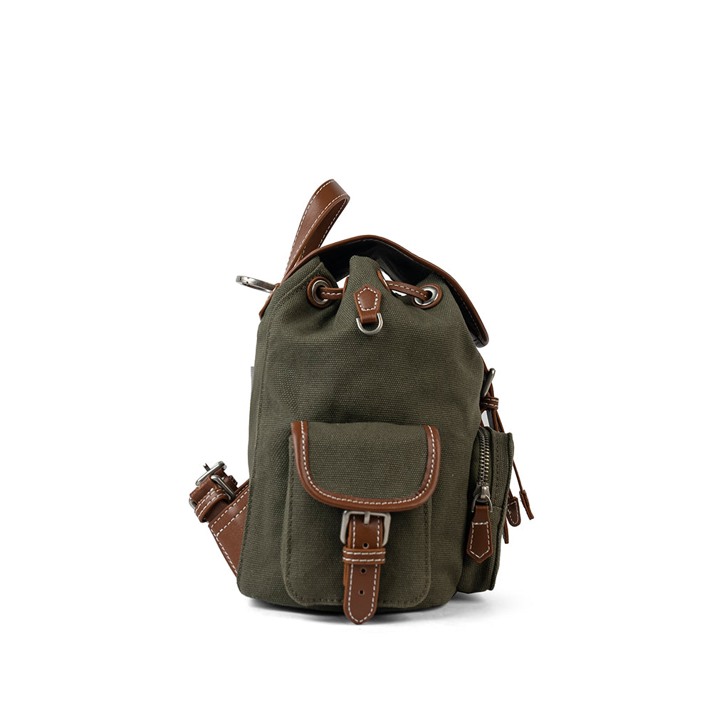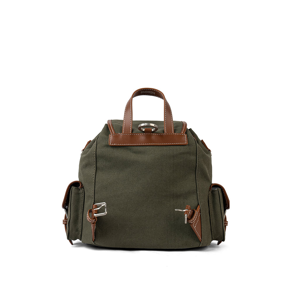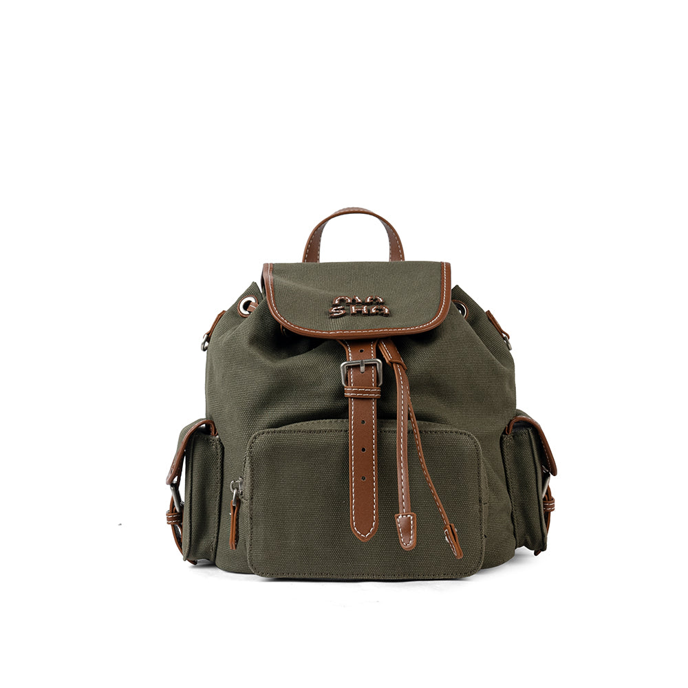 【S004】 異素材使い☆キャンバス カジュアルリュック 緑