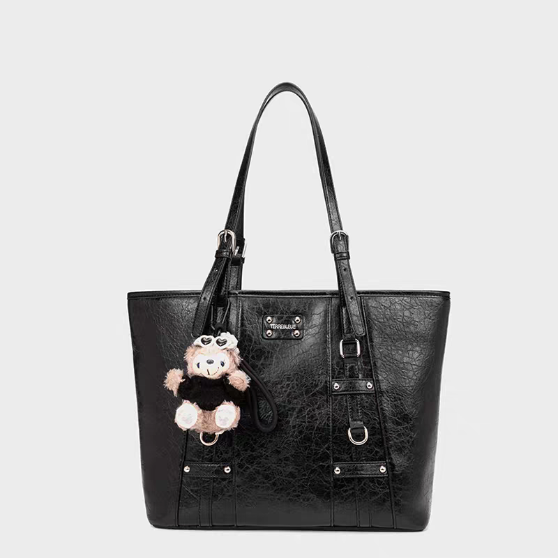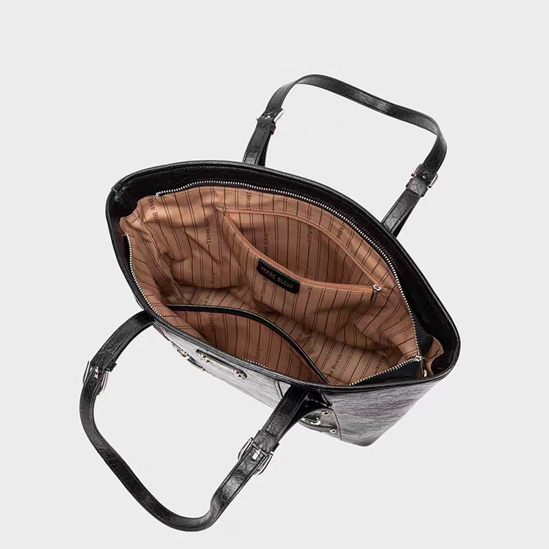 【T012】大容量+高級感あふれるレトロ風トートバッグ-黑